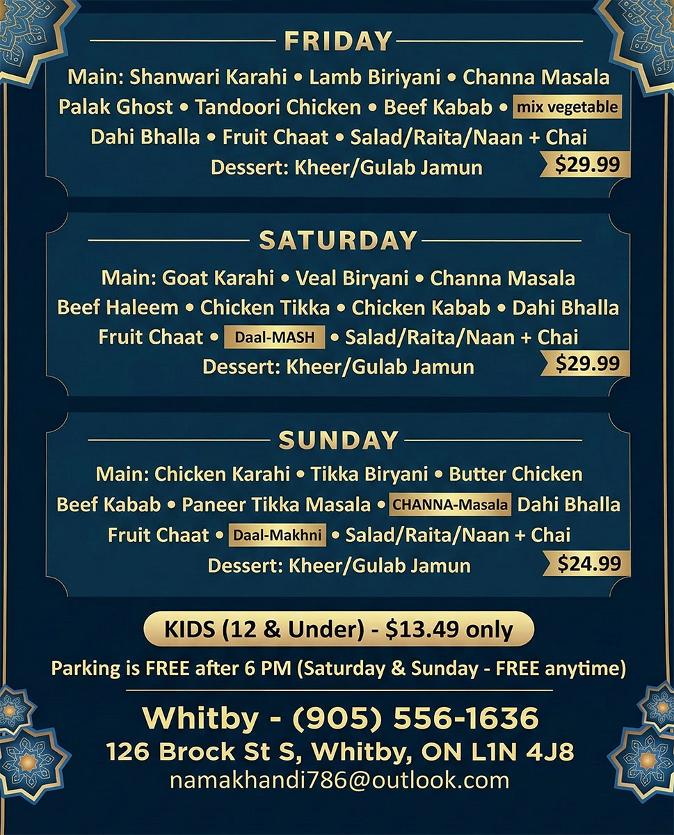 Delicious Authentic Pakistani Cuisine (905)-556-1636